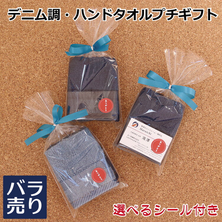 楽天市場 送料無料 デニム調ハンドタオル2枚組 プチギフト W048 10個セット 選べるシール付き プチギフト ラッピング 上質 メンズ 男性 インディゴ ジーンズ ありがとう お世話になりました 大量 まとめ買い バレンタイン 業務用タオル販売ふつうのタオル屋